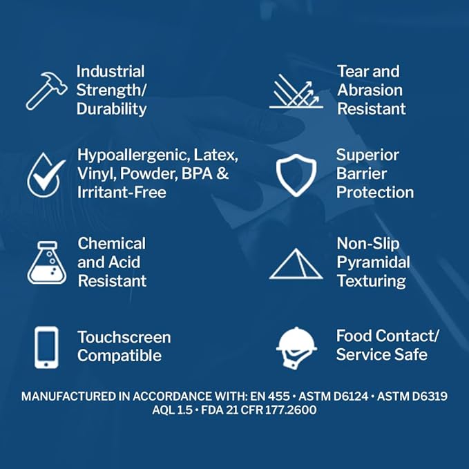 - BETTER FIT, FEEL & COMFORT = BETTER JOB PERFORMANCE: Uniquely designed and manufactured from superior quality nitrile, our gloves fit better, are more comfortable, and easier to pull on and remove, while their variable-gauge construction ensures they’re thickest where added strength is needed, yet light enough to retain the feel wanted when handling small items & touchscreens. And with the reverse side of their deep texturing promoting internal air circulation, they keep hands drier and happier.