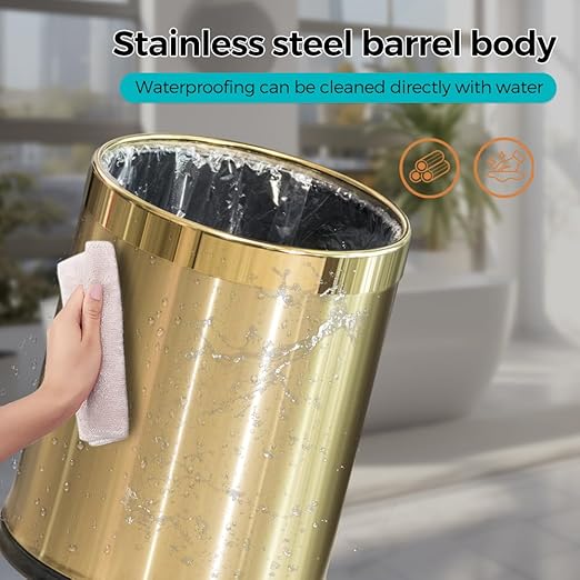 2.64 Gallon Brass Gold Bathroom Trash Can, Double Walled Wastebasket, Elegant, Modern Garbage Can for Bedroom Kitchen Hotel Cafe Office Restaurant (88J Gold