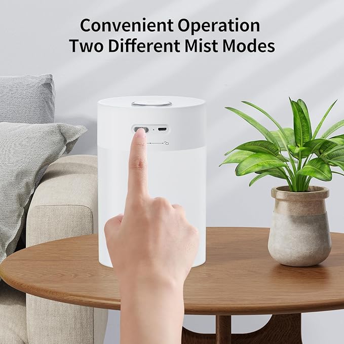 - 【TWO MIST MODES】The small humidifier has two modes: continuous spray & intermittent spray.You can adjust the spray amount as needed. It can effectively moisturize dry skin and help you reduce skin peeling or relief from sinus issues.