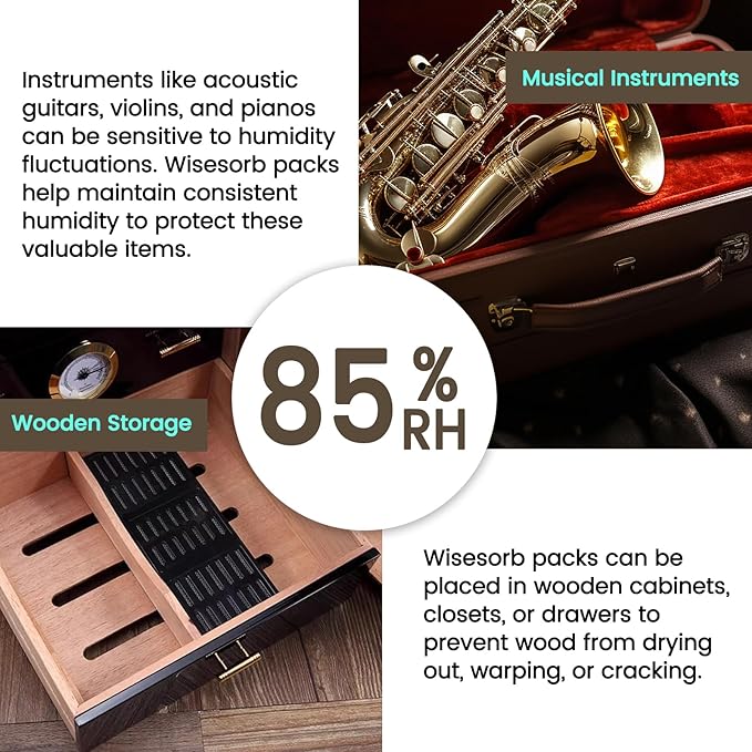 - 【Wisesorb Humidity Control Packs are Suitable for Preserving the Freshness of a Variety of Products】: Moisture packs are not limited to substances alone. They are suitable for preserving the freshness of various products, such as spices, brown sugar, coffee beans, music instrument and woodwind reeds. No matter what you store, humidity control packs work tirelessly to maintain the proper humidity level.