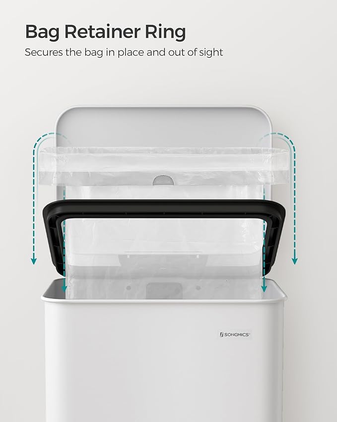 - [15 Garbage Bags Included] To get you started, we've included 15 custom-fit SONGMICS trash bags (code 050A), designed to perfectly fit this step trash can