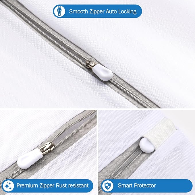 - High Quality Zipper With Protection:Our premium rust-resistant,smooth zipper with auto lock and smart zipper protection will prevent the bag from opening during washing and drying cycle.