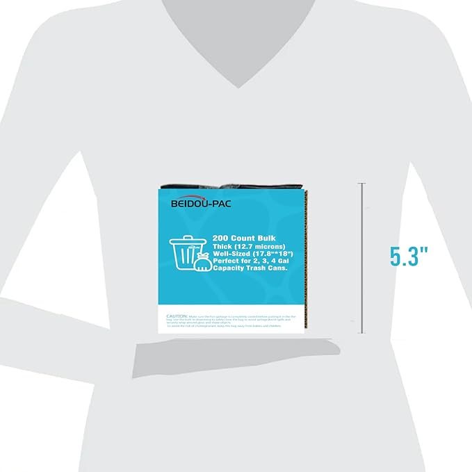 - 1, Product information: BEIDOU-PAC 2-4 gallon black drawstring plastic Can Liners, Size: 17.8"*18"x 12.7 mic, Total 200 bags bulk (50 PCS/ROLL , 4 CORELESS ROLLS/CTN), Perfect for 2, 3, 4 Gal Capacity Office, Bedroom and Kitchen Wastebasket trash bins.