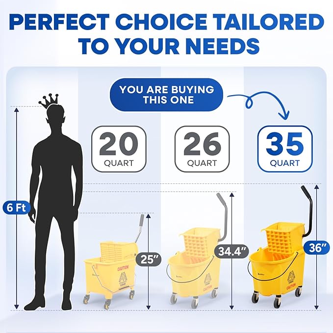 - Industrial Mop Bucket with Wringer: Designed for tough cleaning tasks, this 35-quart industrial mop bucket features a durable side press wringer, ideal for commercial and residential cleaning applications.