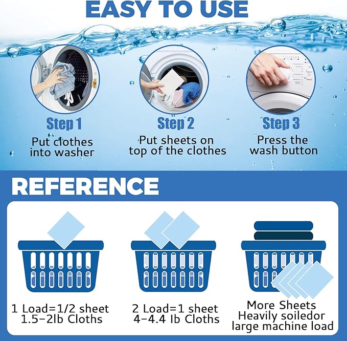 - Precise Dosage: Laundry detergent sheets are easy to use. You just need to toss one or more sheets directly into the washing machine. Since they come pre-measured, you don't have to worry about using too much or too little detergent. And there's no liquid or powder to spill, so there's less mess to clean up. This can help you save money and reduce detergent waste. It's also safer to store if you have curious children or pets.