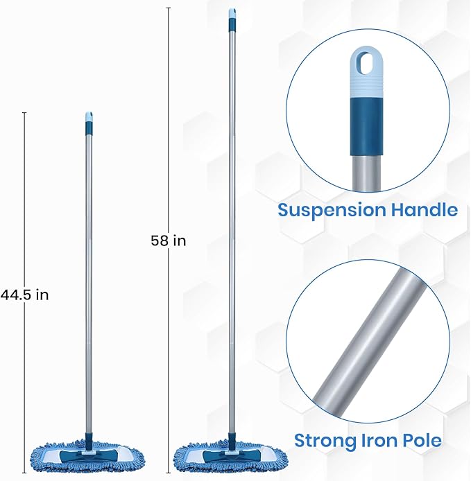 - Microfiber Dust Mop for Deep Cleaning - Dust mop with adjustable length 31"-57", long enough for you to clean without bending down, Help you easily clean every corner of your home