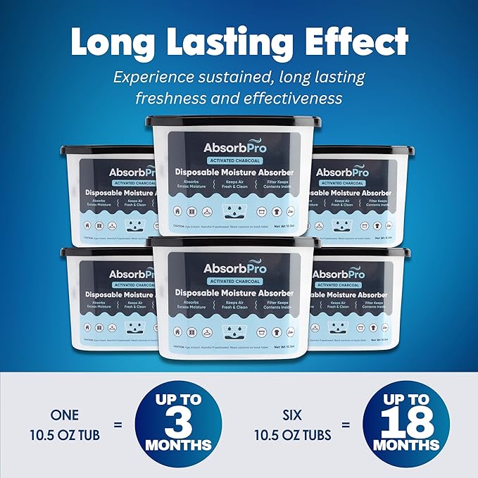 - Enjoy Enduring Freshness: Experience sustained, long lasting freshness and effectiveness of our 10.5 oz dehumidifier tub with activated charcoal, designed to last for an impressive period of up to 3 months, depending on ambient temperature and humidity levels.