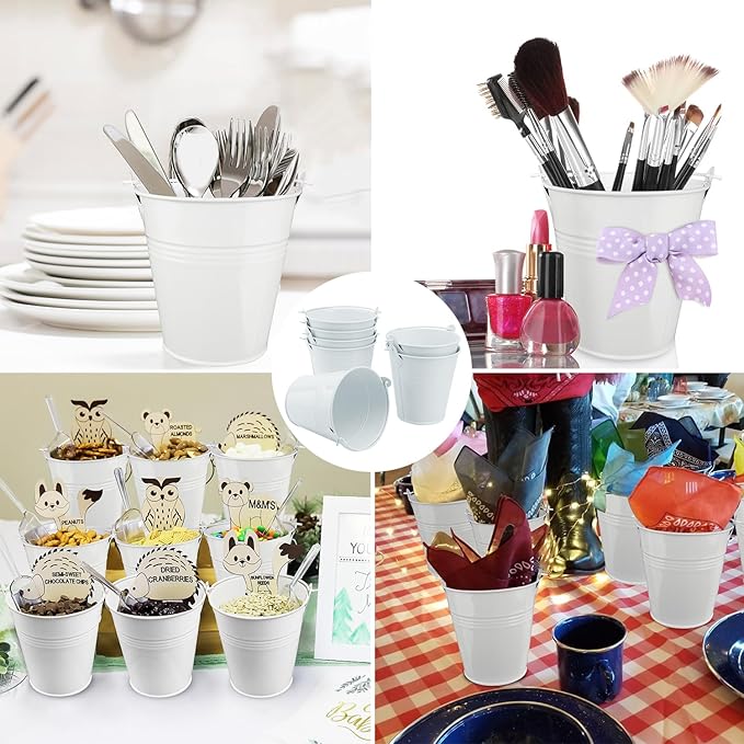 - 【Perfect for party favors】 GENHAKON small white metal buckets are perfect containers to dish out mouthwatering birthday cookies and candy. Cute, sturdy, and downright delightful, metal buckets for party give you enough room to pack all your lovingly made goodies.