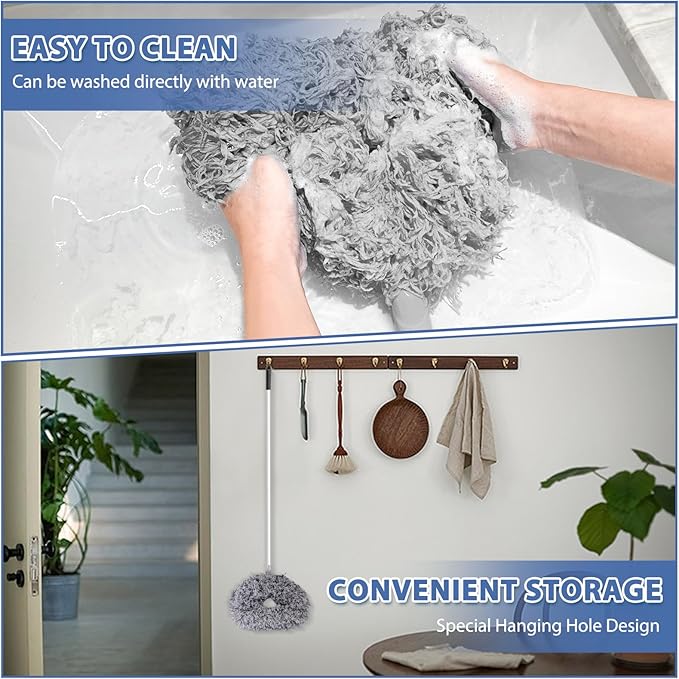 - Throughout Convenient: The brush head is detachable, making it easy to remove after cleaning. Additionally, the fan duster for ceiling fan blades can be conveniently hung on a hook hole for drying after use, ensuring convenient storage and portability.