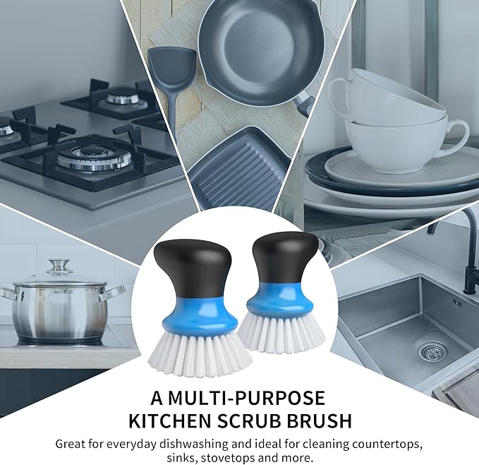 MR.SIGA Dish Scrub Brush, Palm Brush Dish Scrubber with Ergonomic Grip, Kitchen Brushes for Dishes, Blue, Pack of 2