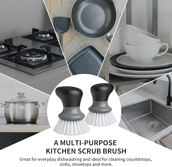 MR.SIGA Dish Scrub Brush, Palm Brush Dish Scrubber with Ergonomic Grip, Kitchen Brushes for Dishes, Gray, Pack of 2