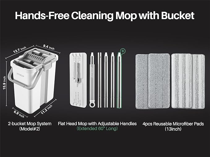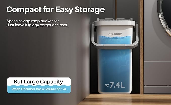 - [HOUSEHOLD CLEANING TOOL] JOYMOOP mop and bucket with wringer set, 2-bucket mop system, WASH and DRY, scratch dirt away in WASH chamber, squeeze out of water in DRY chamber, hands-free cleaning mop with bucket. !NOTE:PLEASE WET MOP to avoid hard-insert Problem!