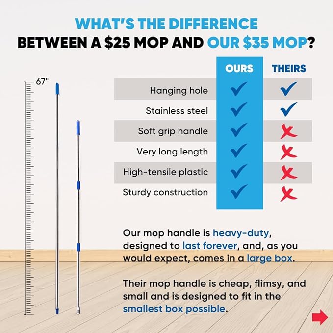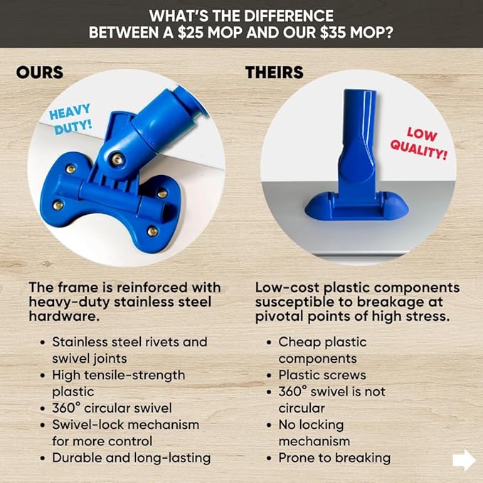- ✔ [UNRIVALED DURABILITY] — Engineered for longevity, our pro mop features an adjustable stainless steel handle that ensures lasting durability and confidence. The strips securely attached to the mop pads are integrated into the frame, preventing peeling even after prolonged exposure to moisture.