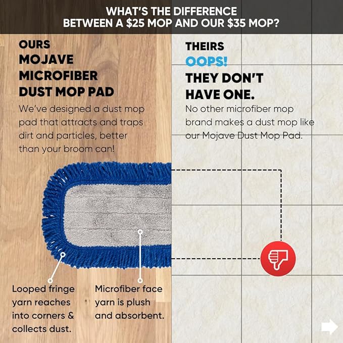 - ✔ [PROFESSIONAL-GRADE CLEANING] — Tailored for professional cleaners, our floor cleaning solution is a top choice for homeowners tackling daily and weekly cleaning tasks. This comprehensive kit includes all the essentials for impeccable floors, effectively eliminating dust, pet hair, and debris with the Mojave dust mop and premium wet mop pads.