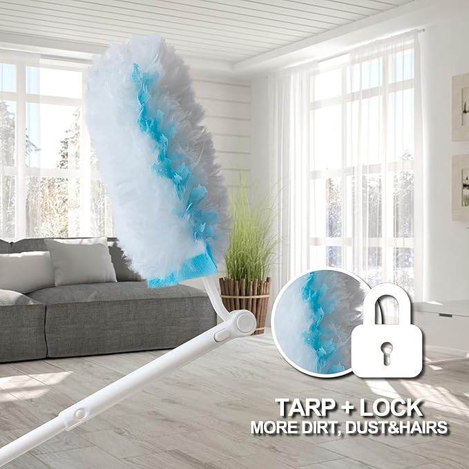 - Versatile use: The duster head is soft and fluffy, which can easily pick up dust, dirt, hair, fur, crumbs, pet hair, and other debris on any surface without leaving lint.