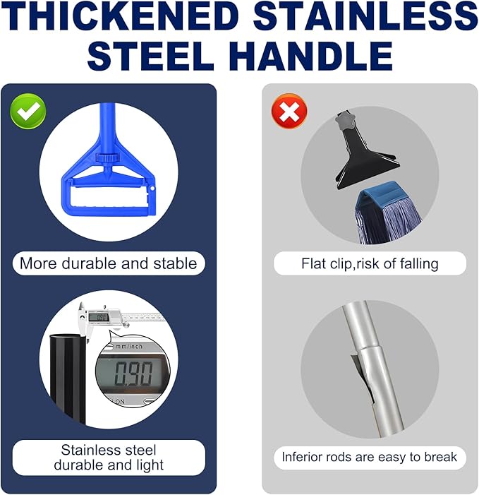 - 💎Durable and Comfortable - Premium stainless steel handle with 9mm extra thick tube makes this commercial mop handle stronger than fiberglass and wooden handles, foam handle design makes cleaning more comfortable.