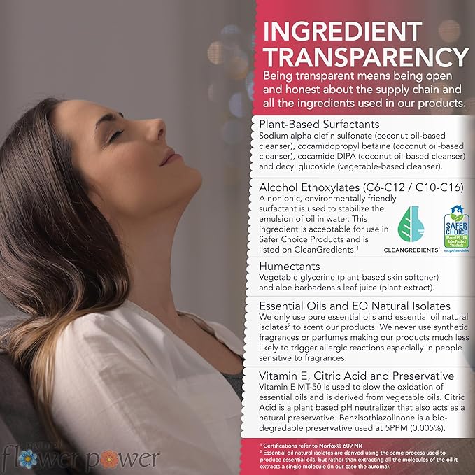 - VEGAN & CRUELTY-FREE – Natural Flower Power products are cruelty-free, vegan, never tested on animals, and are made in the USA. We strive to provide high-quality products you can trust to use around your friends, family, and pets.