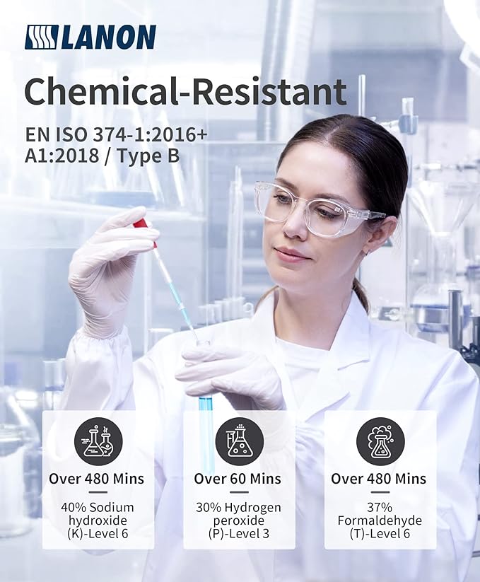 LANON Food Safe White Disposable Nitrile Gloves, Latex-Free, Powder-Free, Textured Fingertips, Cooking, Cleaning, Case, Large