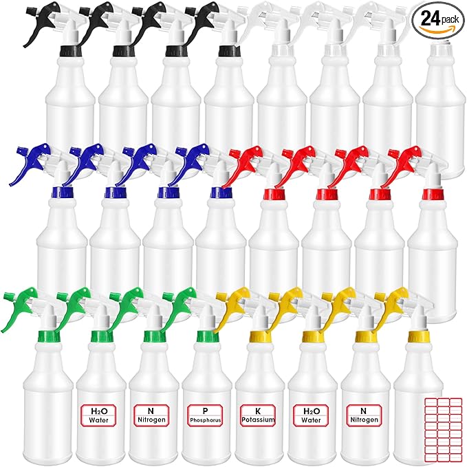 - Available to Get: you will get 24 pieces of 24 oz water spraying bottles with 1 sheet label sticker, spray bottles mainly in red, blue, green, white, black and yellow, sufficient quantities can meet your use and replacement needs, they are easy to store and carry; In addition, you can also share them with others