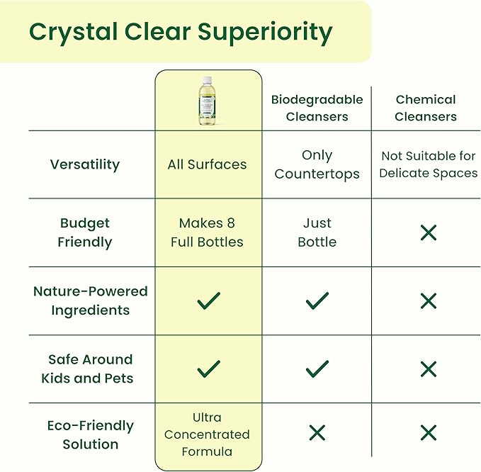 - Versatile, Residue-Free Cleaning - From kitchen cleaner to shower cleaner, our multifunctional surface cleaner tackles grease, stains, and dirt without leaving sticky residue. It works effortlessly on floors, countertops, and more, making it the ideal surface cleaner for all your cleaning supplies.