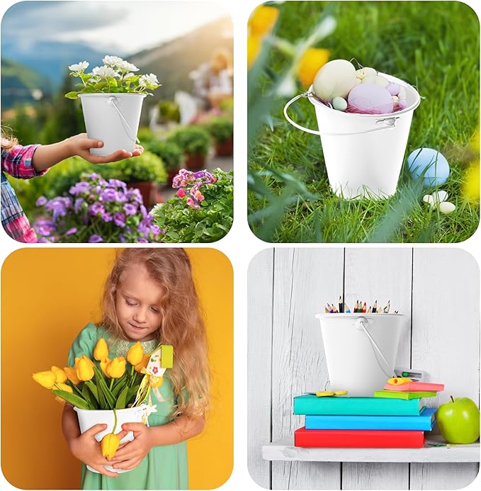 - 【Practical & Functional】Tin bucket offer versatile uses for hanging, carrying, and storing various items such as pencil, crayons, paintbrush, or candies. Small buckets convenient size and strong wire handles are a sturdier and more long-lasting alternative to plastic buckets