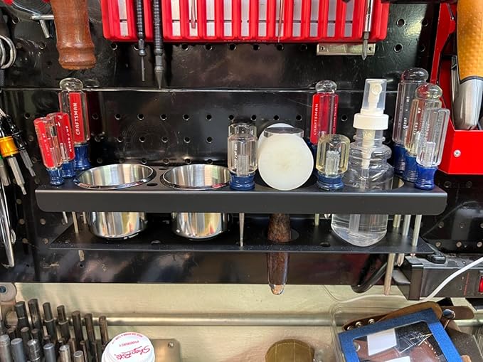 - [Organize Your Space]: Features 4 spray bottle slots and 12 holes of varying sizes. Designed for users who need efficient, orderly storage and retrieval of frequently used tools