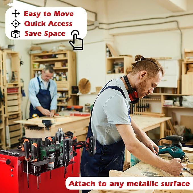- [Utility Storage Tools Rack]: The bottom of the holder has a rubber magnet, which has strong force and anti-slip resistance to ensure that the rack will not slide during use. It can be installed on tool carts, workbench, pegboard and other metal surfaces