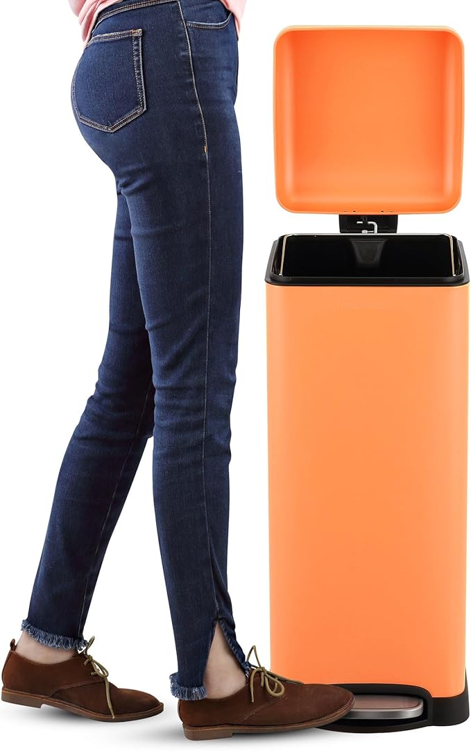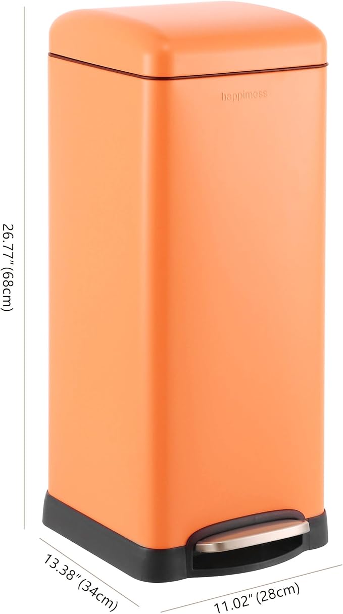 happimess HPM1007G Betty Retro 8-Gallon Step-Open Trash Can, Fingerprint Resistant, Modern, Minimalistic for Home, Kitchen, Laundry Room, Office, Bedroom, Bathroom, Carrot Cake