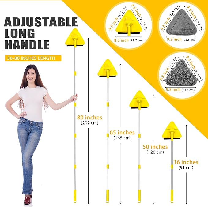 - 6 PCS PADS FOR DRY & WET USE: The triangle mop comes with 3 PCS microfiber pads and 3 PCS chenille pads. The microfiber pads can be wet-used for mopping and window cleaning, while chenille pads can be dry-used for dusting and removing spider webs.