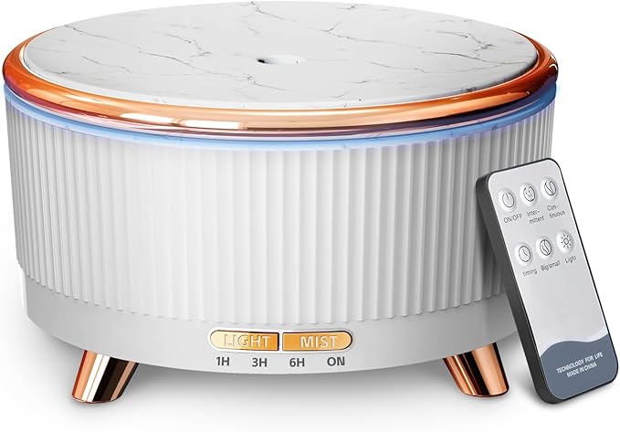 - REMOTE REMOTE CONTROL, MULTIPLE MODES:You can set the time, spray and light effortlessly and easily by remote control or button. The product has 7 colors of light with 3 light modes and 4 timer settings (ON/1H/3H/6H). And it provides 3 modes of heavy mist/light mist/intermittent mist for your choice.
