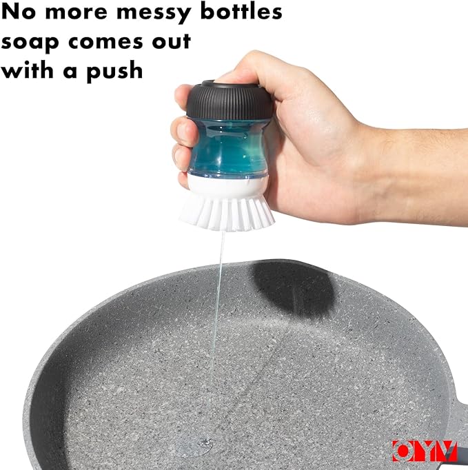- EACH PRESS IS JUST RIGHT: The dish scrubber brush dispenses the perfect amount with each press, avoiding waste or shortage. Adding water inside the soap dispensing palm brush while using is also recommended for better results