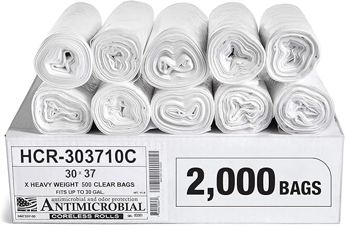 Aluf Plastics High Density Trash Bags, 30 Gallon, 2000 Count, 10 Micron (eq), 30" x 37", Clear, for Bathroom, Office, Industrial, Commercial, Janitorial, Municipal, Recycling