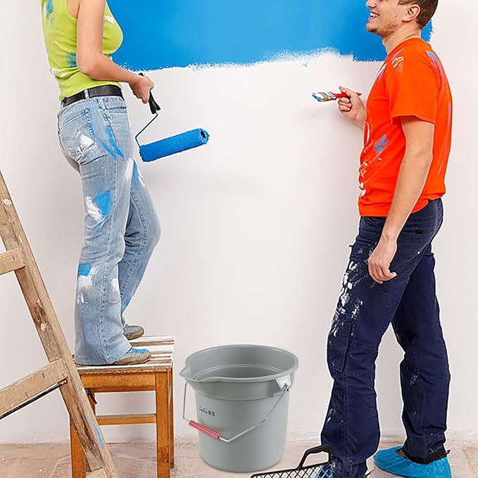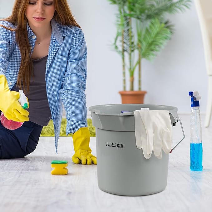 Begale 3.5 Gallon Commercial Cleaning Pail, Plastic Round Car Wash Bucket with Handle, Gray, Pack of 4