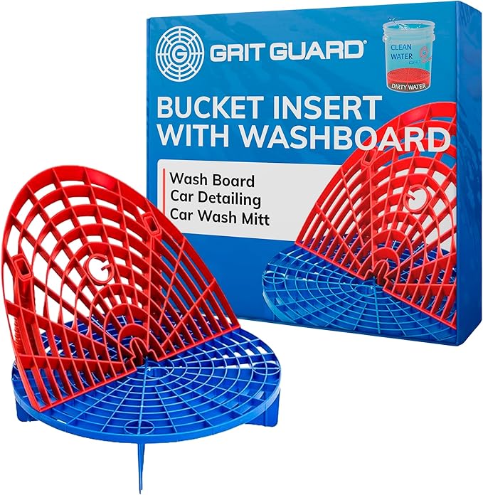 Grit Guard The Original Bucket Insert with Washboard Combo | Removes Dirt from Wash Mitt for Detailing | Car Wash Bucket Insert & Washboard | Red/Blue