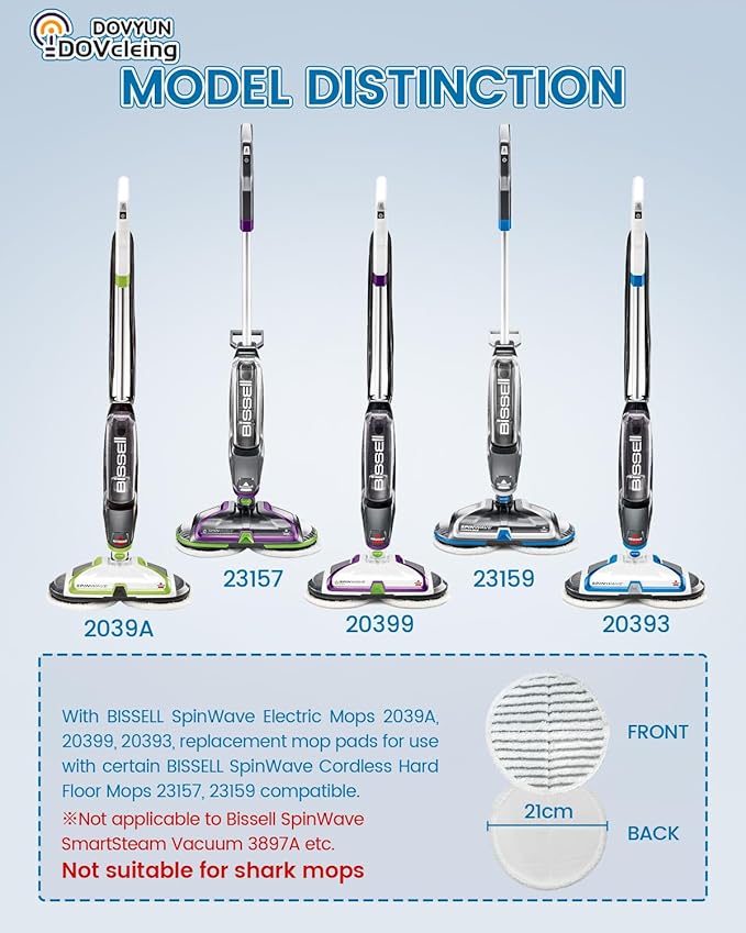 - 【Compatibility Mop Model】: Mop pad for Bissell spinwave multiple models: 2124 2039 2039A 2039Q 2039T 2039W 20391 20393 20395 20399 2307 2315A 23157 23159. Please check whether the model is compatible before ordering.
