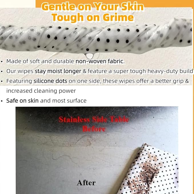 - Dual-Action Grill Wipes Design: Featuring silicone dots on one side, these wipes offer a better grip and increased cleaning power, making it easier to tackle even the most stubborn stains on your grills, grates, and cooking surfaces.