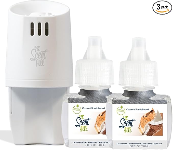 Scent Fill Coconut Sandalwood Plug in Air Freshener, Scented Oil Refills, 2 Refills + Diffuser