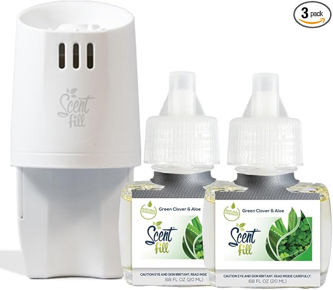 Scent Fill Green Clover & Aloe Plug in Air Freshener, Scented Oil Refills, 2 Refills + Diffuser