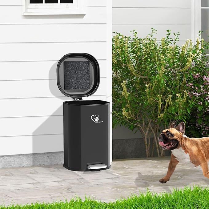 - What You Get:A custom-designed assembled high-capacity trash can outside , a removable inner container, an odor-control filter, and 45 waste bags. Say goodbye to mess and odor with the Meegood dog poop trash can for outdoor or indoor