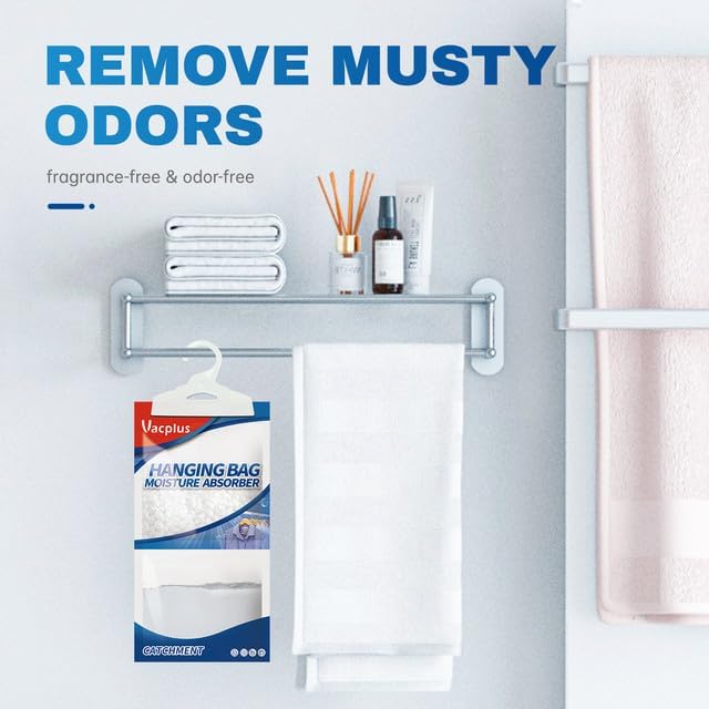- EASY And SAFE: Vacplus moisture absorber packets provide an easy solution to protecting items and fabrics from excess moisture. By Hanging them up, physical dehumidification gives you a Safe, Green & Energy-saving life.