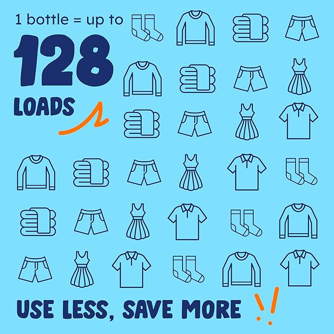 - ULTRA-CONCENTRATED NATURAL LAUNDRY DETERGENT – Get up to 128 loads per jug with this high-efficiency (HE), formulated with plant-origin ingredients. Tough on stains and odors, yet gentle on fabrics—perfect for eco-conscious households