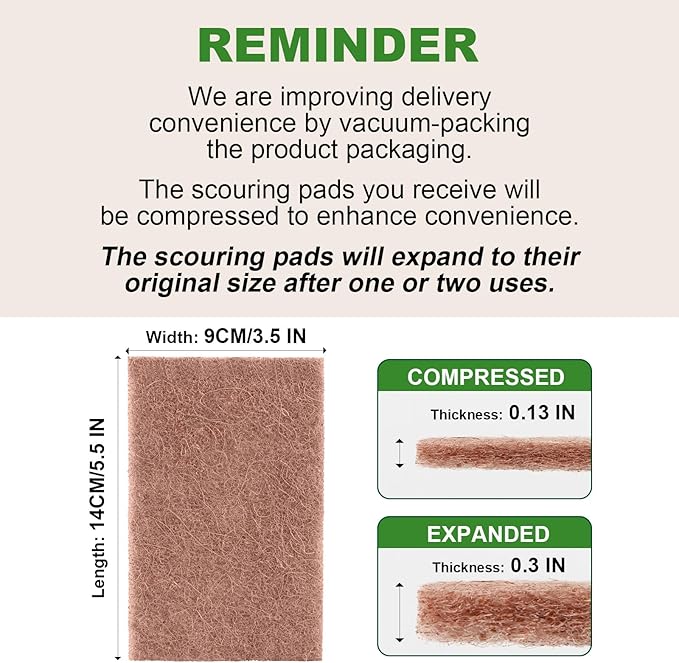 - Built to Last: Our reusable natural scouring pads are constructed from durable materials; guarantee longevity through multiple uses and washes; unlike other cleaning products, our scouring pads don’t succumb to breakage or rust; ensures easy maintenance and an extended lifespan