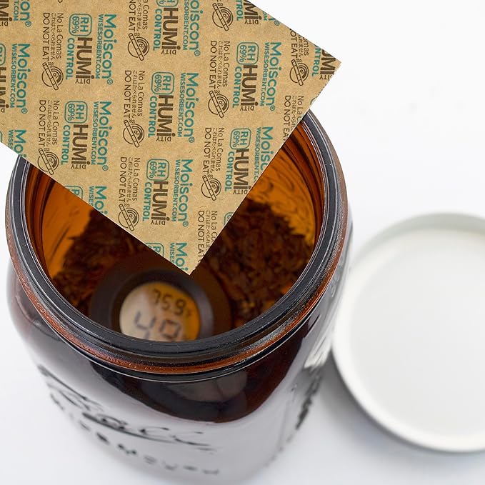 - 【Easy to Use】: Simply drop humidity packs into your desired container, whether it's an air proof Mason jar, small jars of flower, violin case, baby food jar, a box or sealed bag. Perfect for storing things, maintaining optimum humidity, and preserving the freshness of various products. Whether you're a connoisseur, or someone who values quality and longevity, our packets are an essential tool for you. Package includes 5pcs of 60g humidity packs.