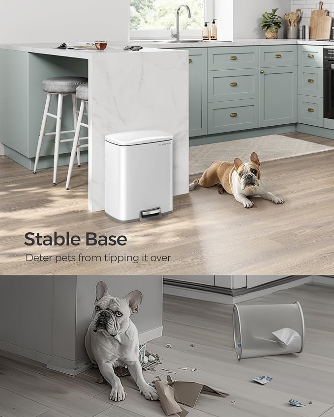 - 【HEAVY-DUTY AND STABLE】Made with a stainless steel body, this garbage can is sturdy, rust-resistant, and easy to clean for extended use. The non-slip pads on the base keep the bin stable, deterring pets from tipping it over
