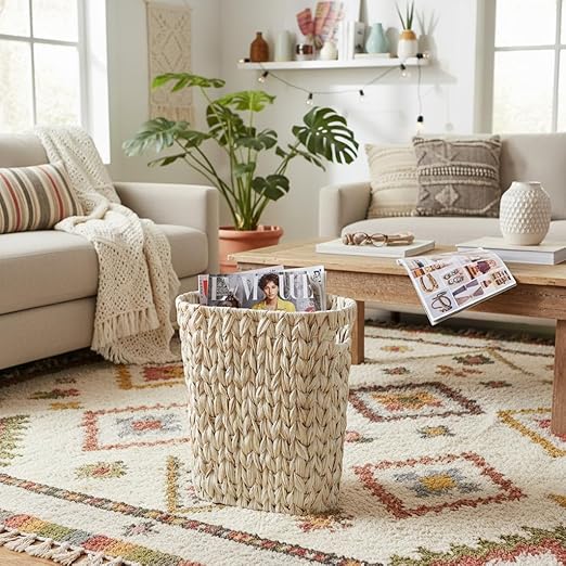 - SEAMLESS INTEGRATION WITH ANY DECOR🎴Its rich wicker-like texture adds a touch of elegance to any room, effortlessly complementing various decor styles from farmhouse to boho. Available in a charming array of colors, it seamlessly integrates into your space while offering versatile functionality. Whether used as a bathroom trash can or a waste basket for bedrooms, it's sure to enhance your living environment.