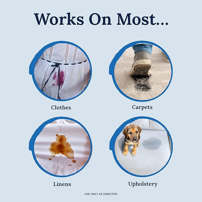 - POWERFUL & FAST WORKING This lightning fast laundry stain remover spray is perfect for clothes, upholstery, and carpets.