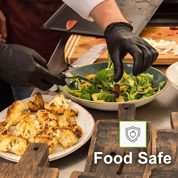 FifthPulse [150 Count] Biodegradable Gloves - Black Nitrile Disposable Gloves - Medical Exam and Food Safe - Latex Free