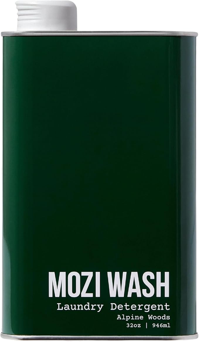 Mozi Wash Laundry Detergent Liquid, Alpine Woods- Sandalwood, Pine & Patchouli, 50+ Loads, Concentrated, Non toxic, Plant Based Enzyme Cleaners, Long Lasting Luxury Clean, Cologne Soap for Men, 32 oz
