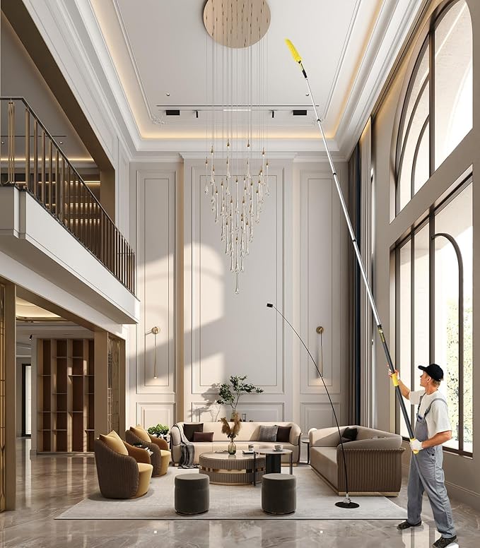 - Flexible and Securely Attached: the 27-inch flexible brush duster easily bends and reaches difficult spots to dust removal from surfaces on ceiling fans, corners, tight spaces, walls, blinds, shelves, lights, screens, baseboards, etc. indoor and outdoor