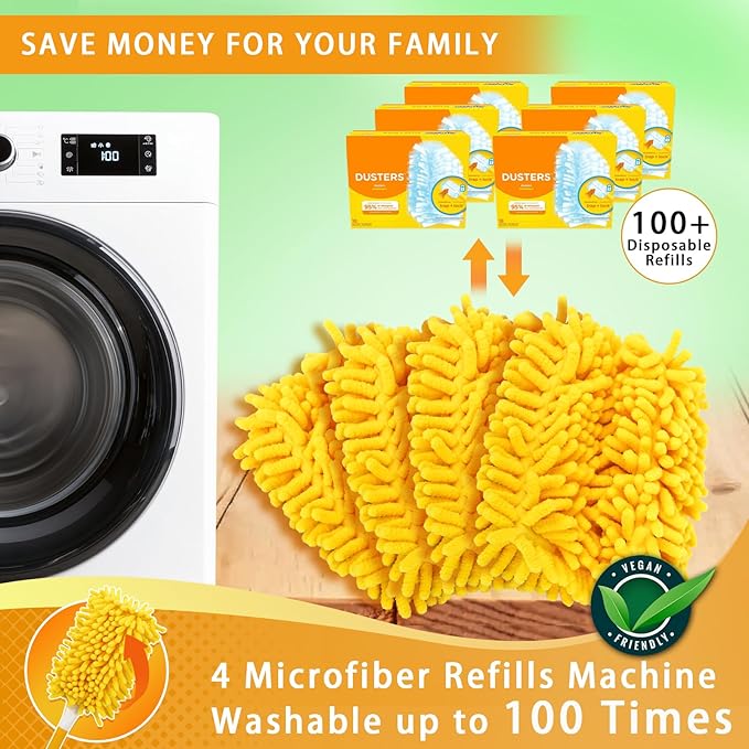 - Reusable and Save Your Money: These duster refill for swiffer duster are machine washable and can be wash up to 100+ times. One reusable duster refill is equal to 100+ disposable duty refills, you needn't rely on expensive disposable refill any more. Just choose our microfiber refills, save a lot of money for you every year and reduce waste for the earth
